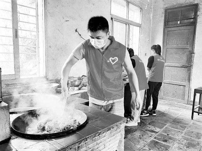 上圖:黨員志愿者鄭順火在廚房烹飪。