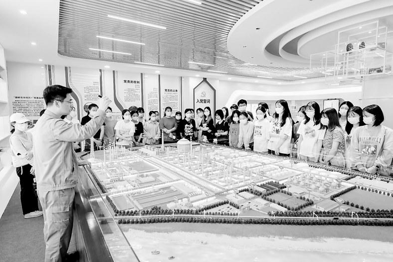圖為龍巖學(xué)院應(yīng)用化學(xué)專業(yè)師生正在聽(tīng)福海創(chuàng)公司工程師授課。(鄭杰鵬 攝)
