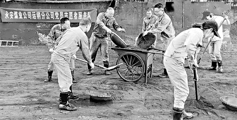 10月18日,永安煤業(yè)運(yùn)銷(xiāo)分公司黨支部組織黨員到柯坑煤場(chǎng)開(kāi)展“我為群眾辦實(shí)事”主題黨日活動(dòng)。黨員志愿者按煤質(zhì)指標(biāo)不同,通過(guò)人工挖掘、人工挑擔(dān)及人工手提的方式,分門(mén)別類(lèi)將排洪溝和煤場(chǎng)支撐柱周?chē)姆e煤裝運(yùn)到指定位置,便于煤炭汽車(chē)調(diào)運(yùn)裝車(chē)。(王尚斌 攝影報(bào)道)