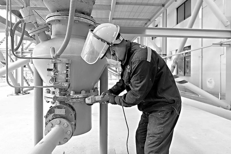 龍安熱電公司抓住煤炭價格大幅回落的有利時機,保供熱、發(fā)電,確保全面完成生產(chǎn)經(jīng)營工作任務(wù)。圖為11月5日,該公司工人正在對1號靜電除塵0米層氣力輸灰總管進行防腐處理。(福龍宣攝影報道)