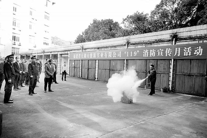 11月9日下午,天湖山能源公司舉辦“119”消防安全知識(shí)培訓(xùn)。圖為實(shí)操演練現(xiàn)場(chǎng)。(邱家賀攝影報(bào)道)