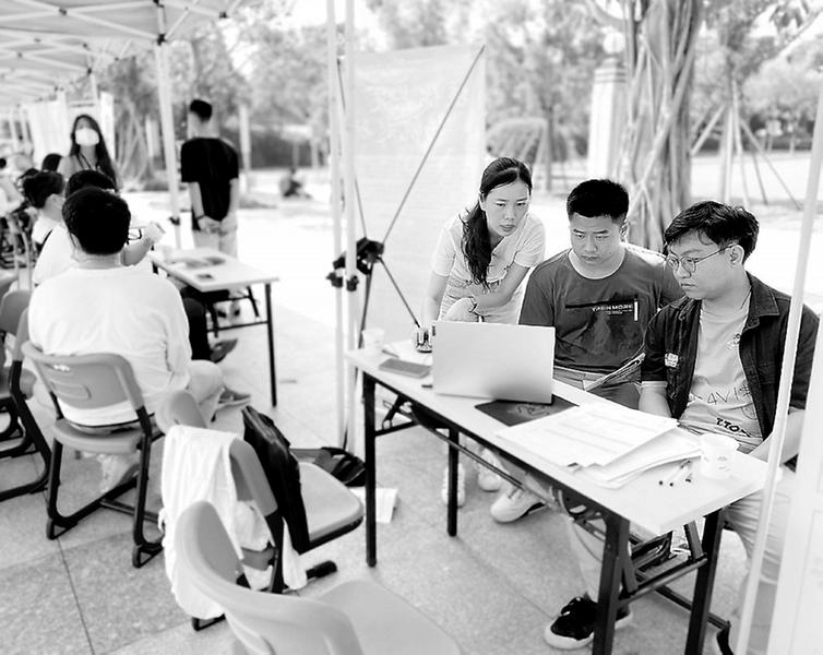 11月6日,建材控股漳州混凝土公司參加漳州職業(yè)技術(shù)學(xué)院2021屆畢業(yè)生冬季供需見面會,共有100多家企業(yè)參加了此次供需見面會。圖為工作人員向畢業(yè)生宣講企業(yè)文化。(韓輝攝影報道)