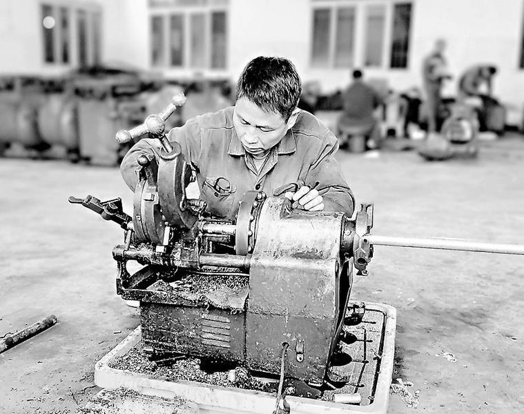 為進(jìn)一步提升后勤保障能力,助力礦井秋冬安全生產(chǎn),福建煤電公司翠屏山煤礦機(jī)電隊(duì)認(rèn)真做好井下生產(chǎn)物料的加工制作。圖為11月9日,該礦機(jī)電隊(duì)工人正在加工空壓機(jī)風(fēng)包排水管。(溫曉蘭攝影報(bào)道)