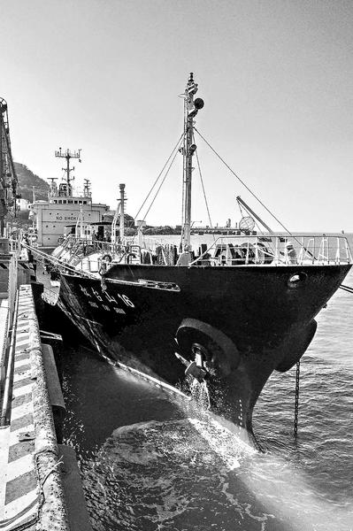 11月24日8點(diǎn)40分,裝載著1950噸液化石油氣的船舶“松臺(tái)山16”順利停靠在福海創(chuàng)公司液體碼頭南-3#泊位。這是該公司液體碼頭自投產(chǎn)運(yùn)營(yíng)以來首次迎來液化石油氣卸船作業(yè)。圖為液化石油氣卸船作業(yè)現(xiàn)場(chǎng)。(黃樹昌 攝影報(bào)道)