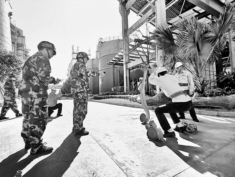 11月29日,晉南熱電舉行了第二屆“安康杯”消防技能競賽。圖為“兩帶一槍速接”項目比賽現(xiàn)場。