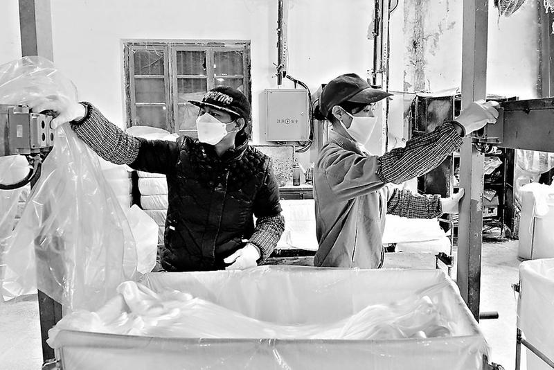 今年以來,福維公司積極應對市場變化,按照市場需求不斷優(yōu)化水洗長絲生產工藝,水洗長絲品種結構由單一向多規(guī)格開發(fā)定型,全年累計生產水洗長絲1380多噸,取得了良好的經濟效益。圖為近日,該公司員工正在包裝水洗長絲產品。(陳福華攝影報道)
