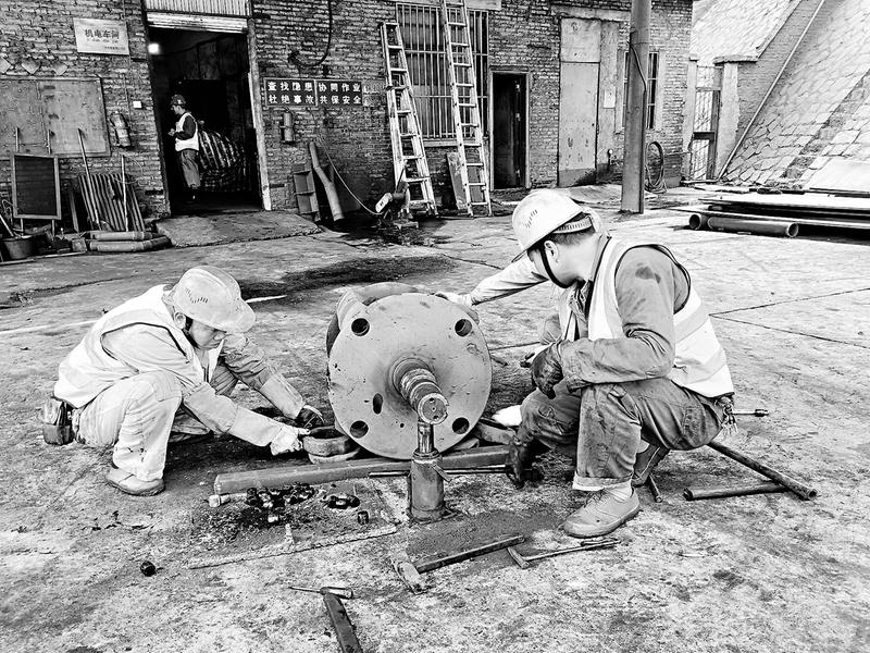 年關(guān)將至,永安煤業(yè)公司西洋篩選廠提前對(duì)設(shè)備進(jìn)行年終檢修,確保安全生產(chǎn)。圖為12月9日,該廠機(jī)電人員正在檢修破碎機(jī)。(曾芳春李明輝攝影報(bào)道)