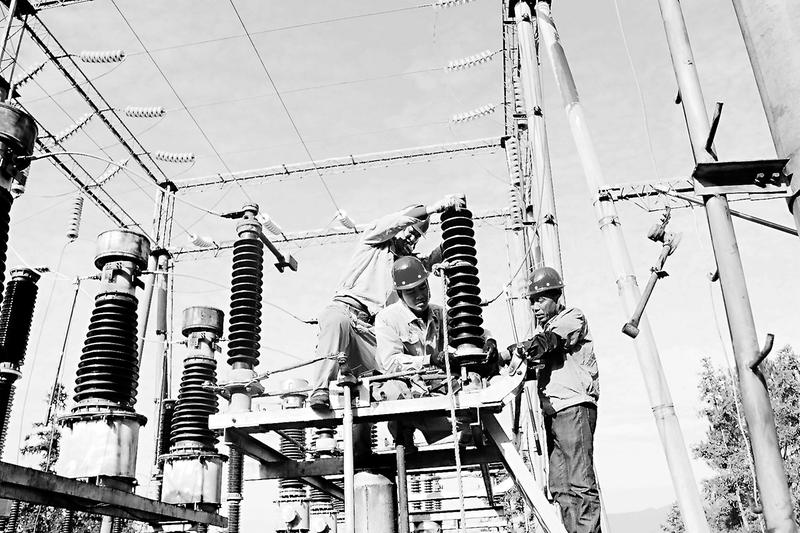 永安煤業(yè)公司上京供電所加強供電設備檢修,全面排查隱患,確保電網(wǎng)安全穩(wěn)定運行。圖為1月4日,在上京礦區(qū)110千伏變電站,該所運維人員正在更換被雷擊壞的黃京線110千伏1233刀閘。