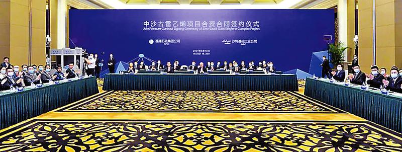 2021年8月18日,中沙古雷乙烯項目正式簽訂合資合同。該項目將建設一套年產150萬噸乙烯裝置,同時配套建設一系列下游生產裝置。此次簽約,標志著福建省一次性投資最大的外資項目宣告落地,也標志著集團在國際化發展道路上邁出重要步伐。