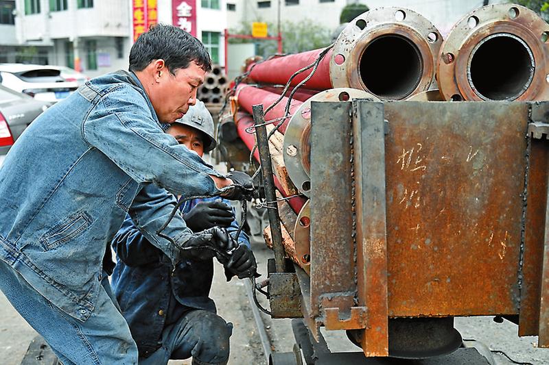 連日來,福建煤電公司龍?zhí)睹旱V按時(shí)間節(jié)點(diǎn)有序推進(jìn)礦井年終檢修計(jì)劃。圖為近日,該礦工人正在加固運(yùn)料車上用于檢修更換的水管。