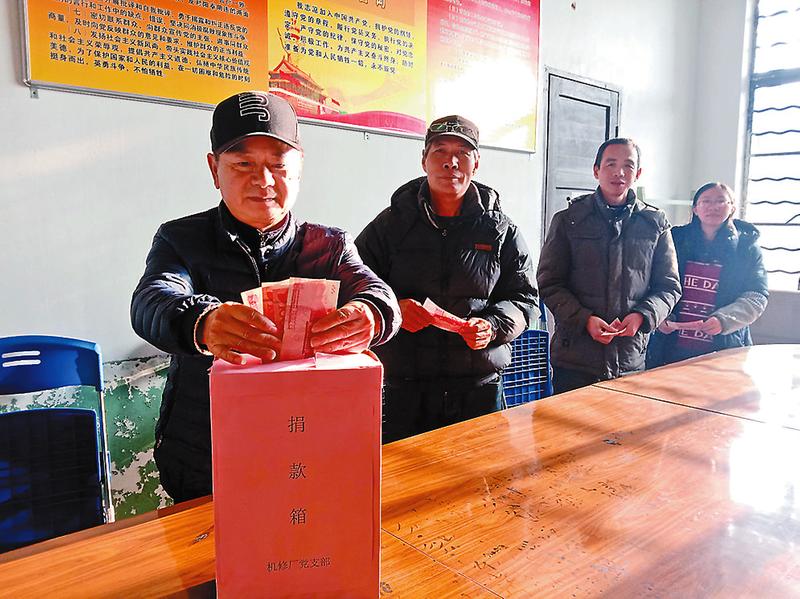 1月10日,南紡衛(wèi)材公司機修廠黨支部書記張振明得知有位職工妻子正在醫(yī)院ICU搶救的消息后,立即召集支部委員及職工代表發(fā)出捐款倡議。機修廠全體員工積極行動,獻出愛心,讓該職工及家人在最困難的時候感受到人間真情。圖為機修廠員工正在捐款。