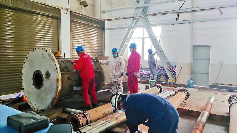 1月19日,晉江氣電公司1號機組D修順利結束。作為2022年“開春第一修”,該公司堅決落實缺陷處理、隱患消除,全力保障機組設備安全穩定,捍衛春節期間保電陣地。圖為外委檢修隊伍正在開展檢修作業。