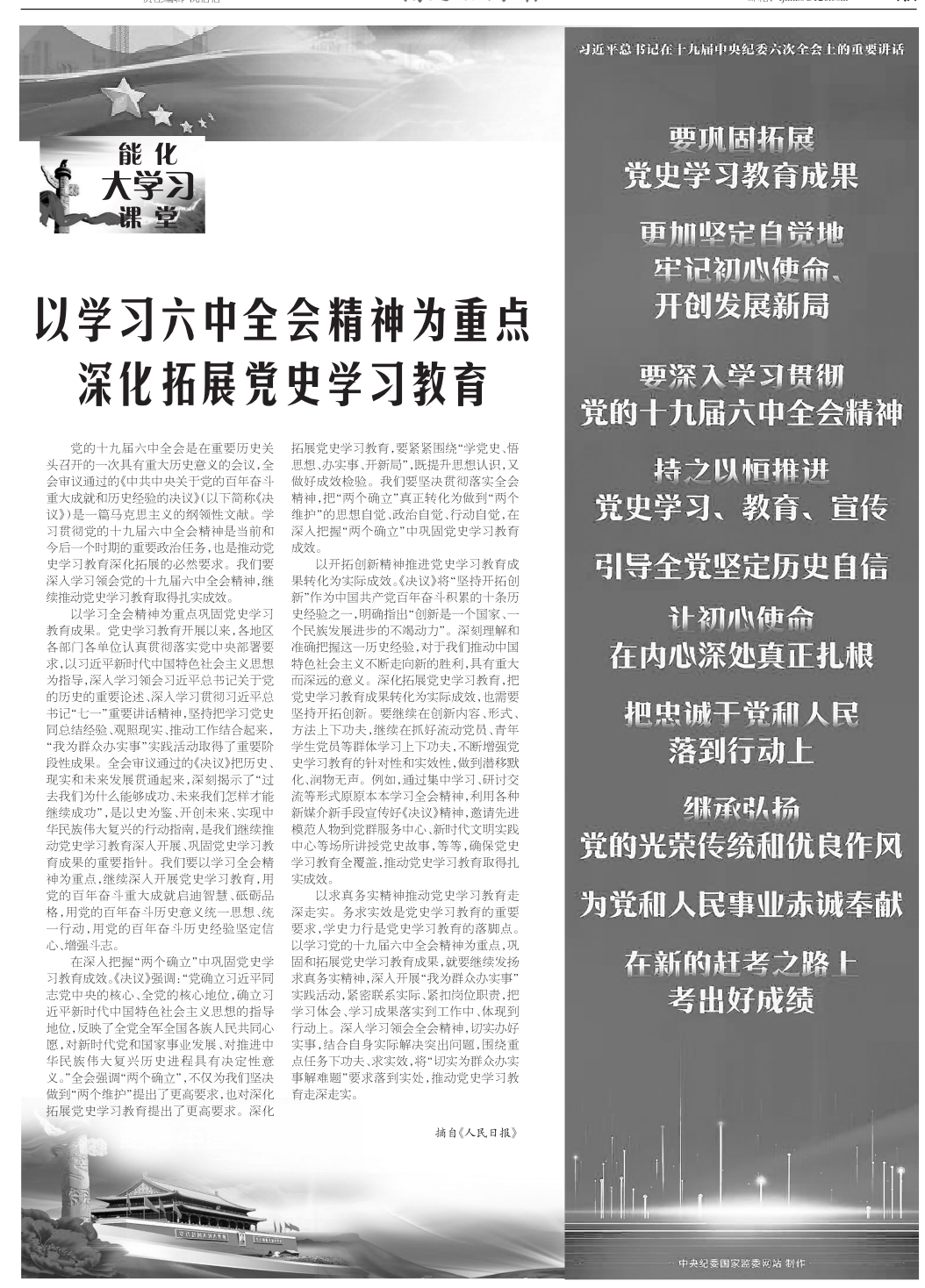 以學習六中全會精神為重點深化拓展黨史學習教育