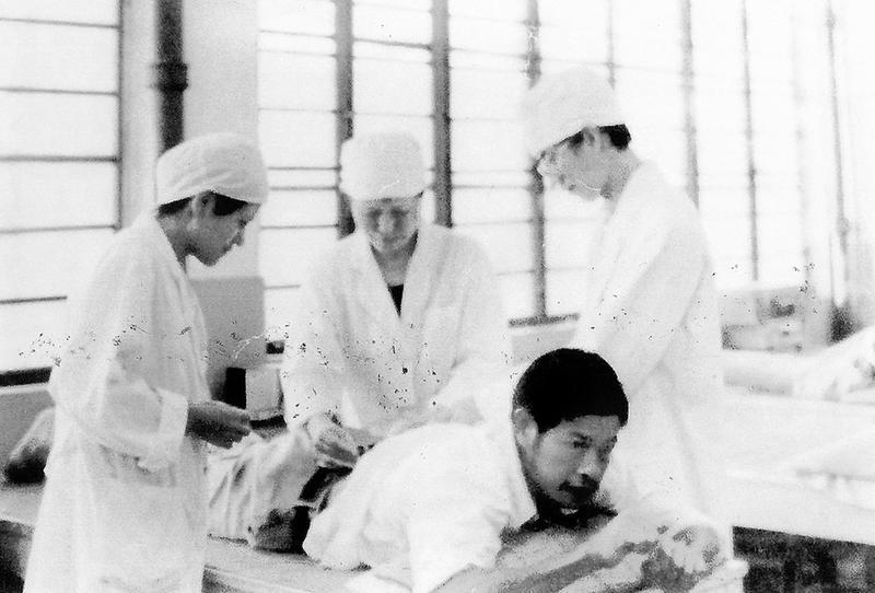 郭常典的丈夫逝世時,她才54歲,自知痛哭無用,她便加倍努力奮斗,活得很充實。她繼承父志培育好家風,三個兒子在不同崗位努力奮斗:大兒子是教授級研究員、碩士生導師;二兒子是省質檢局處級干部;小兒子遠在國外創(chuàng)業(yè)發(fā)展。他們跟母親一樣愛國為民,熱心公益事業(yè),讓郭大夫甚感欣慰。她不顧年邁繼續(xù)克己奉公,一心只想將祖國針灸醫(yī)學事業(yè)繼承發(fā)揚光大,作為中國針灸學會成員兼職福州針灸學會理事,在醫(yī)院曾榮獲1990~1993年技術考核優(yōu)秀稱號。夕陽生輝映晚霞,壯心不改寫赤誠。她撰寫了有關針灸醫(yī)學論文十多篇,刊載于省內外醫(yī)學專刊,備受廣大讀者和同行的好評。(翁其華)郭常典(中)為住院工人針灸施治。