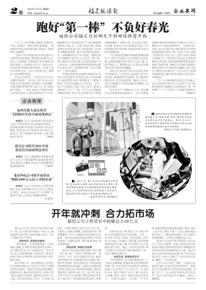 開(kāi)年就沖刺合力拓市場(chǎng) 聯(lián)信公司工程項(xiàng)目中標(biāo)額達(dá)3.48億元