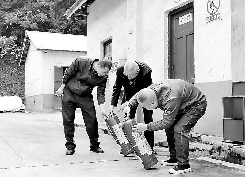 近日,永安煤業物供分公司在各庫區開展消防安全檢查,通過校驗滅火器、補充防火物資等方式,確保各區域防火設施完好、防火物資齊足,筑牢春季防火安全屏障。圖為該公司員工正在檢查滅火器。