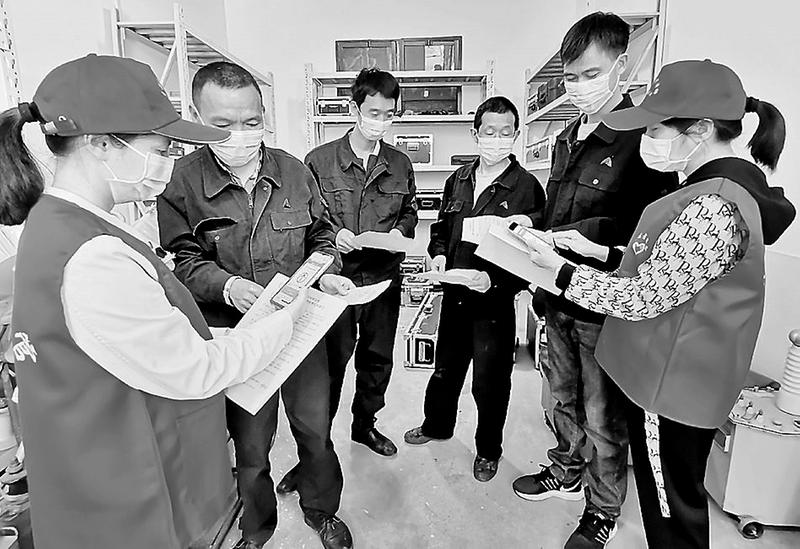 福建煤電電力安裝檢修公司深入一線宣傳疫情防控工作,引導(dǎo)職工家屬做好衛(wèi)生防疫防控,適時監(jiān)控職工出行大數(shù)據(jù)動態(tài)行程卡。圖為3月15日,該公司志愿服務(wù)隊在查看龍巖修試車間職工的動態(tài)行程卡。(張建文 攝影報道)