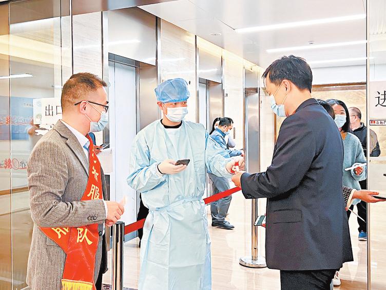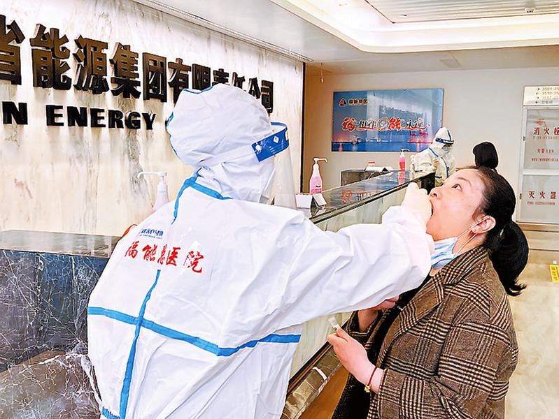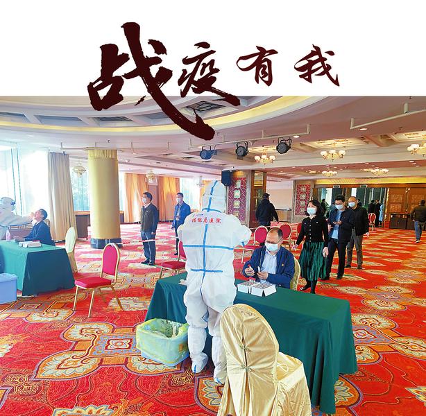 圖為3月24日,福能總醫院到福州美倫大飯店和福建外貿大廈開展上門核酸采集監測工作。
