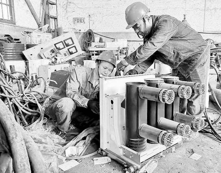 福建煤電電力安裝檢修公司發(fā)揮黨員志愿服務(wù)隊(duì)作用,積極引導(dǎo)黨員開展修舊利廢。圖為近日,該公司永定修試車間黨員志愿服務(wù)隊(duì)修復(fù)一臺(tái)10kV真空斷路器,節(jié)支1.6萬余元。(張建文攝影報(bào)道)