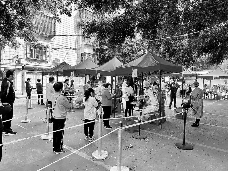 連日來,泉州配售電公司黨員志愿者穿上防護服,進駐東淮社區,協助社區工作者開展核酸檢測工作。(配售電攝影報道)