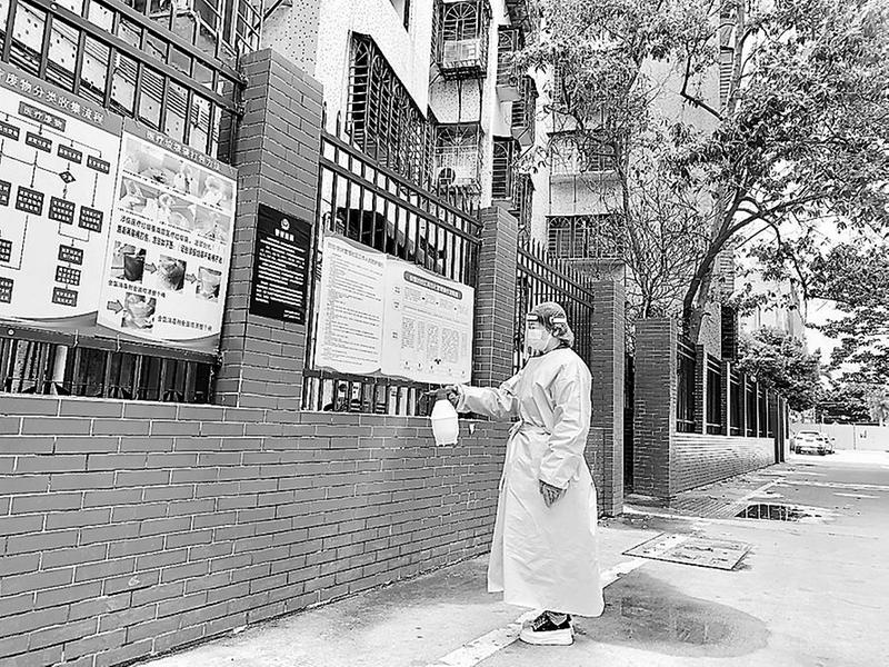 近日,泉州配售電公司志愿者主動(dòng)下沉泉州東淮社區(qū)封控區(qū)參加封控區(qū)24小時(shí)輪班值守。圖為該公司志愿者正在封控樓前進(jìn)行消殺。(配售電 攝影報(bào)道)