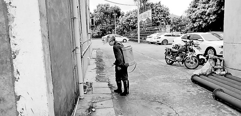 福建煤電公司龍?zhí)睹旱V做好礦區(qū)定期消殺工作,每周對(duì)生活區(qū)、食堂、澡堂、辦公室等重要公共場(chǎng)所進(jìn)行兩次噴灑藥物消毒。圖為近日,該礦行政股工作人員正在消毒。(陳思忠 攝影報(bào)道)