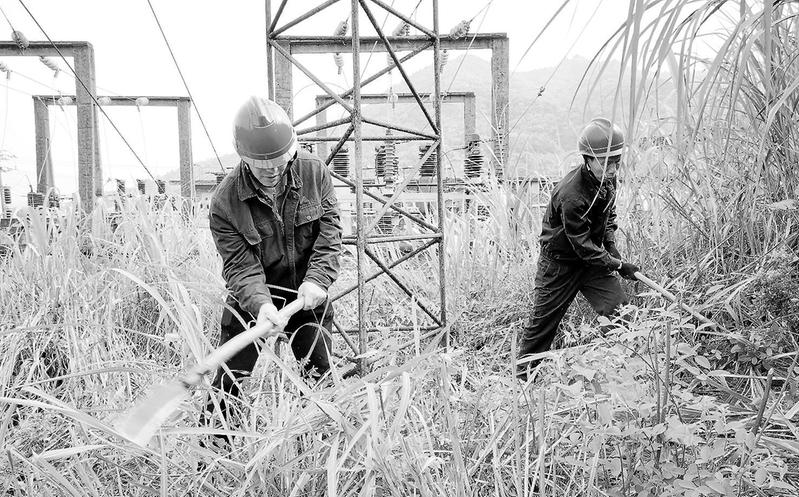 為防范火災(zāi),福建煤電電力安裝檢修公司結(jié)合“春季安全大檢查”要求,組織開展線路通道茅草專項(xiàng)清理行動(dòng)。圖為4月15日,該公司線路通道巡查人員在翠屏山變電站周圍清理茅草和雜木。(張建文 攝影報(bào)道)