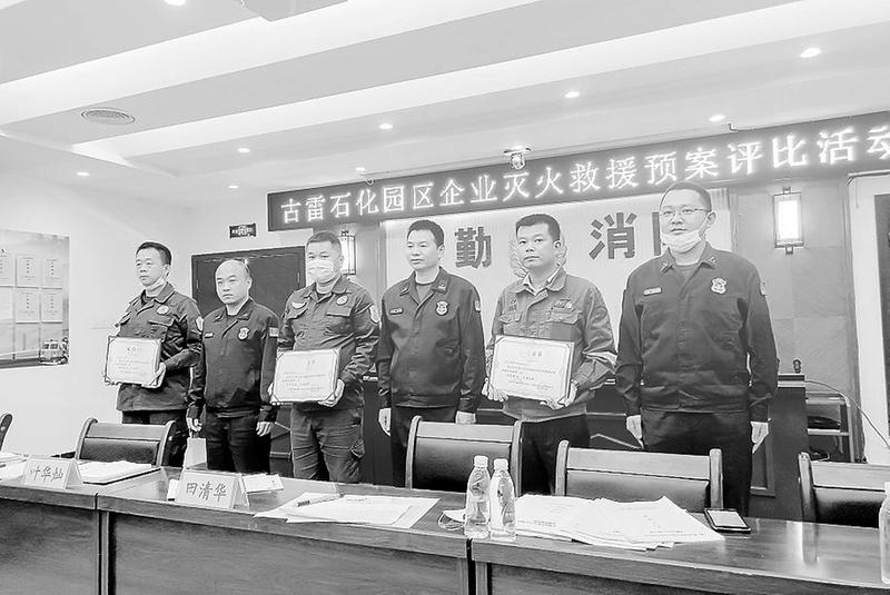 4月22日,漳州市消防救援支隊(duì)特勤大隊(duì)、古雷港經(jīng)濟(jì)開發(fā)區(qū)消防救援大隊(duì)聯(lián)合開展了古雷石化園區(qū)企業(yè)滅火預(yù)案評(píng)比活動(dòng)。福海創(chuàng)公司在園區(qū)16家參賽企業(yè)中脫穎而出,榮獲古雷石化園區(qū)企業(yè)滅火預(yù)案評(píng)比活動(dòng)第一名。(邵云中攝影報(bào)道)