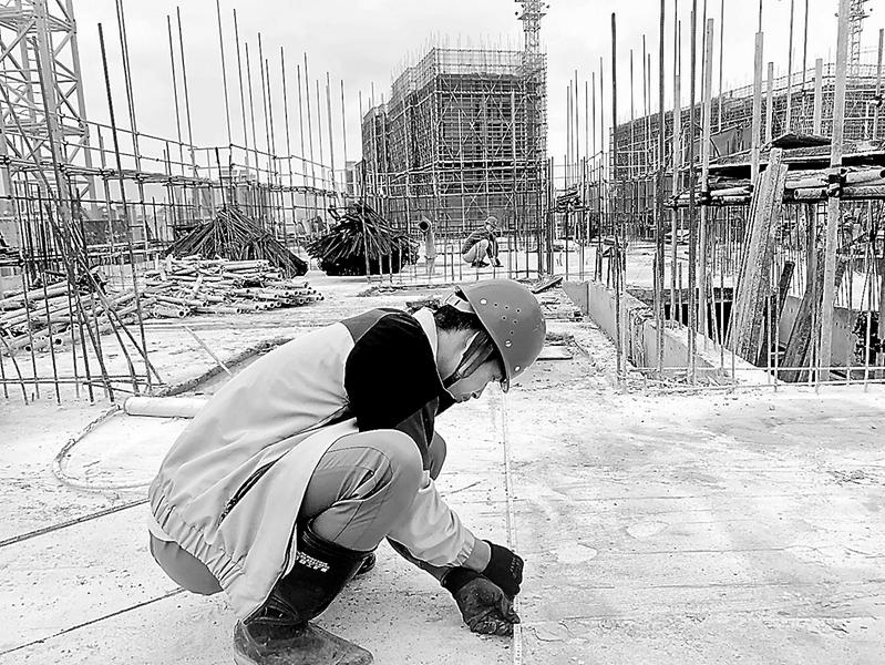 龍巖“美倫·生態(tài)城”項目“五一”假期不停工,施工一線與鋼筋混凝土為伍,與各類機械鋼鐵為伴,加快推進項目建設(shè)。圖為5月1日,工作人員正在D地塊二期D-8#樓18層樓板面施工放樣。(連益峰徐宗鷺攝影報道)
