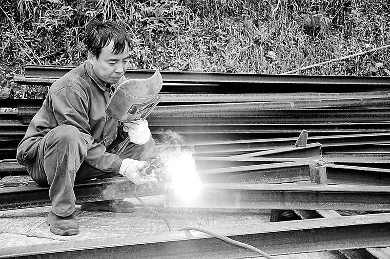 “五一”假期,永安煤業(yè)公司池坪蘆坑煤礦職工盡心盡職堅(jiān)守在各自的崗位上。圖為5月2日,該礦職工正在焊接井下巷道支護(hù)使用的棚梁。