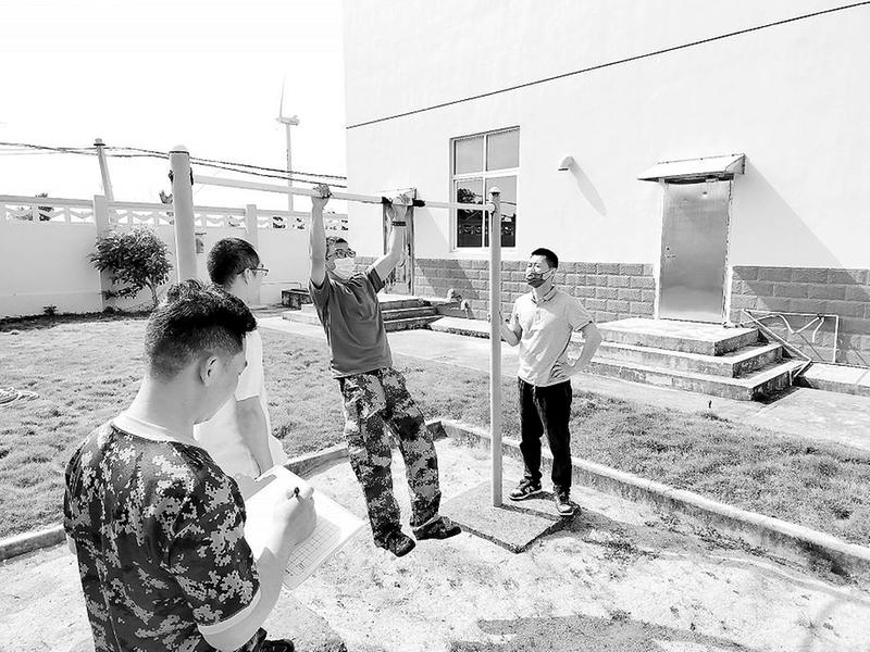日前,福能新能源公司兼職消防隊通過“云集訓”,開展抓握、挺舉和俯臥撐等訓練。圖為近日,兼職消防隊考核引體向上科目,整隊全員均超過15個,達到預期目標。(唐福全 攝影報道)