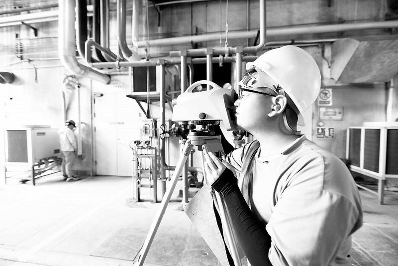 龍安熱電公司定期組織人員檢查排查和消除房屋結構隱患,為企業(yè)安全生產(chǎn)工作順利開展奠定基礎。圖為5月7日,該公司組織技術人員在廠內對廠房安全結構沉降度進行實測。(吳仙和 攝影報道)