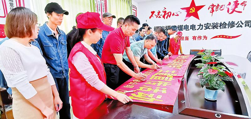 今年5月是第二個(gè)“民法典宣傳月”,集團(tuán)各權(quán)屬企業(yè)通過專題學(xué)習(xí)解讀、知識(shí)競(jìng)賽、發(fā)放宣傳冊(cè)、橫幅簽名等形式,開展“美好生活·民法典相伴”主題宣傳活動(dòng),讓民法典走進(jìn)群眾心里。圖為5月19日,福建煤電電力安裝檢修公司開展民法典宣傳月活動(dòng),機(jī)關(guān)人員在宣傳橫幅上簽名。(張建文 攝)