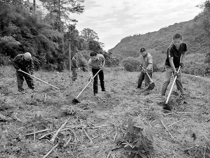 初夏時節(jié),漳平煤業(yè)物業(yè)管理開發(fā)公司組織職工搶抓農時,開展田間管護等農事活動,確保復墾旱地增產、增收。圖為該公司組織職工在木薯地鋤草。(沈建霞攝影報道)