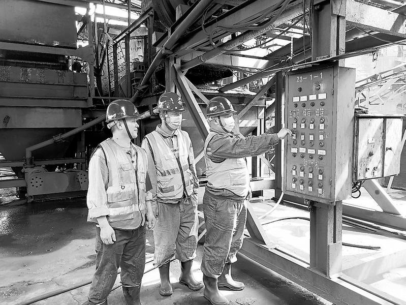 永安煤業(yè)公司西洋篩選廠黨支部深入實施“三提三效”行動和黨建融入安全生產“六大專項”行動,成立“黨員安全督查隊”,深入一線對查出的隱患進行現(xiàn)場督促整改。圖為5月19日,該廠黨員安全督查隊成員深入煤場一線檢查設備運轉情況。(曾芳春 攝影報道)