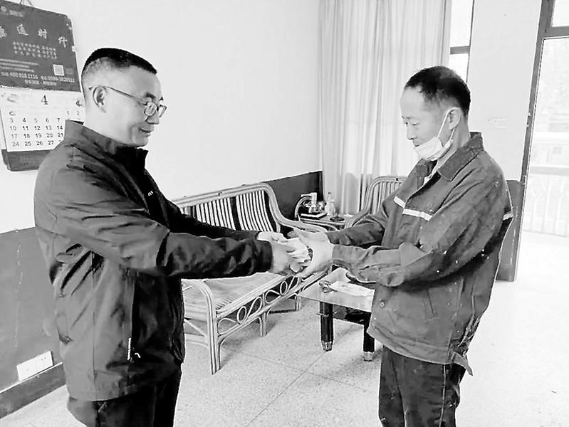 圖為維綸廠工會(huì)主席將捐款如數(shù)交到王某親友手中。 5月20日上午,永安市東院血液科患者王某打開手機(jī)微信,不久前剛從死神邊緣被拉回來的他今天精神好多了,看著微信群里工友們的一聲聲問候和鼓勵(lì),回想自己患病一個(gè)月來工友們對(duì)他的愛心付出,內(nèi)心充滿了感激。