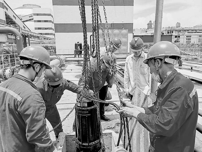 5月28日,晉南熱電公司#1工業(yè)水泵突發(fā)機(jī)械故障。設(shè)備維護(hù)部在接到通知后迅速組織人員對(duì)設(shè)備進(jìn)行檢修。圖為檢修現(xiàn)場(chǎng)。(林國(guó)新 攝影報(bào)道)