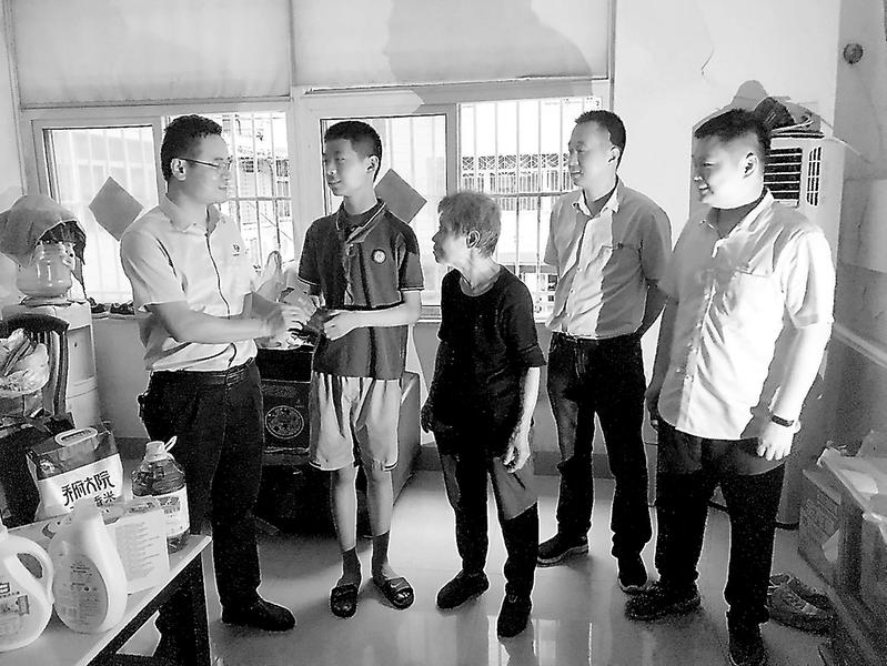 5月31日,在六一國際兒童節(jié)來臨之際,鴻山熱電公司商務(wù)部黨支部看望了幫扶對象陳俊杰(左二),為他送去大米、牛奶、油等生活必需品以及扶助金。這是該支部對其結(jié)對幫扶的第二年。(江志雄攝)