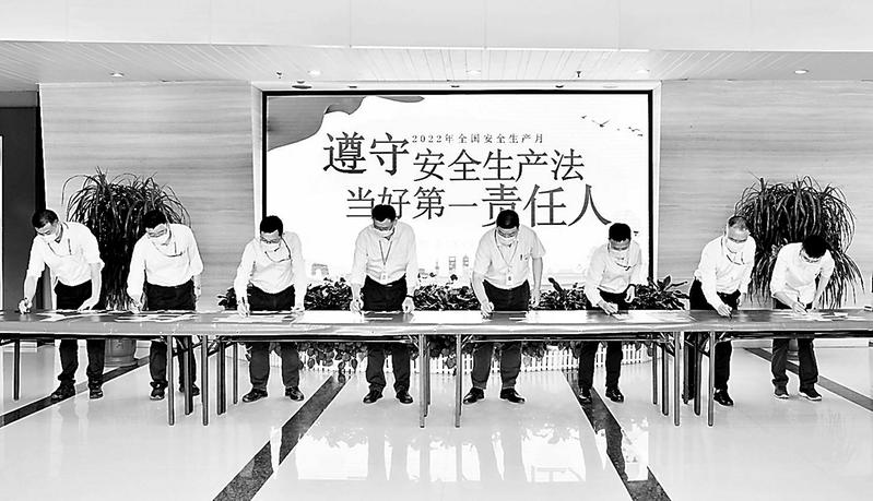 動,,正式拉開了2022年“安全生產(chǎn)月”活動序幕。活動現(xiàn)場,近百名該公司員工及外委協(xié)作單位人員在印有“遵守安全生產(chǎn)法,當好第一責(zé)任人”的主題橫幅上簽字承諾。(傅松華攝)