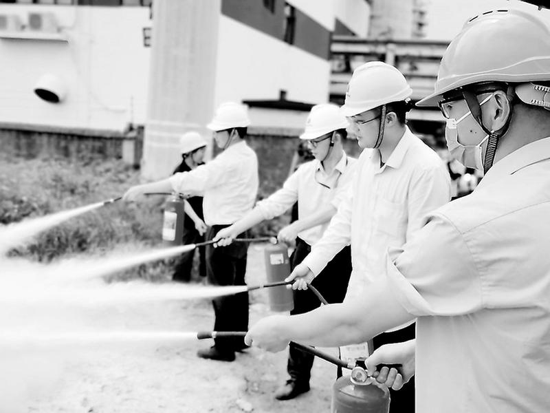 6月21日,晉南熱電公司安監(jiān)部組織公司員工開展消防演練。此次演練采用實戰(zhàn)方式,包括消防滅火、心肺復(fù)蘇救護、正壓式呼吸器使用等項目,讓員工現(xiàn)場學(xué)習(xí)、親自操作,從而達到最佳的效果。圖為該公司員工正在學(xué)習(xí)使用滅火器。(周國利 攝影報道)