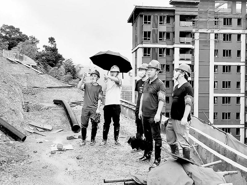 聯(lián)美公司紅炭山置業(yè)黨支部開展“黨員安全紅袖章”行動。圖為6月14日,該黨支部“黨員安全紅袖章”深入生產(chǎn)一線作業(yè)現(xiàn)場,對項(xiàng)目安全生產(chǎn)工作進(jìn)行安全隱患排查,保障安全生產(chǎn)。(許雪玲 攝)