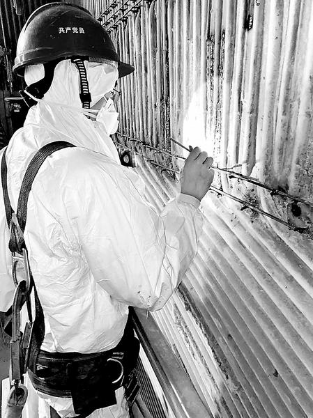 圖為該公司鍋爐專(zhuān)業(yè)技術(shù)組成員李文舉正在檢查焊接骨架。 “武工,這個(gè)骨架焊接過(guò)程沒(méi)有傷到水冷壁管吧。”在今年的機(jī)組檢修期間,鴻山熱電公司鍋爐專(zhuān)業(yè)技術(shù)組成員李文舉正在爐內(nèi)升降平臺(tái)上對(duì)水冷壁管進(jìn)行檢查。