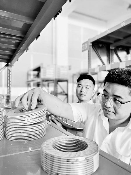 近日,晉江氣電公司以“三提三效”推動物資管理工作,從實從細(xì)完成物資倉庫半年盤點任務(wù),接下來將依據(jù)盤點數(shù)據(jù)進(jìn)一步優(yōu)化庫存物資結(jié)構(gòu)。圖為該公司倉管員正進(jìn)行設(shè)備物資盤點。(張瑞萍攝)