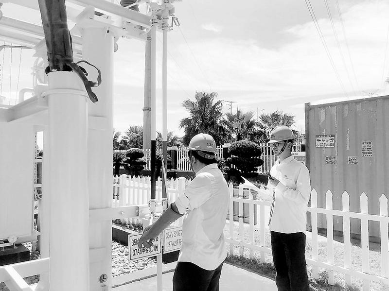 6月26日,晉江氣電公司所屬金井風(fēng)電場升壓站內(nèi)全面檢修、預(yù)防性試驗工作圓滿完成,全場16臺風(fēng)機(jī)恢復(fù)并網(wǎng)運(yùn)行。圖為運(yùn)檢人員進(jìn)行倒閘操作。(王聰穎攝)