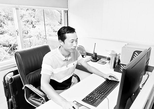 在龍海竹坑尾礦區(qū)項目建設(shè)的施工現(xiàn)場,時常能看到一個又黑又瘦的身影穿梭其中,或是面容嚴(yán)肅地與設(shè)備安裝人員展開激烈討論,或是耐心細(xì)致地對部門員工手把手傳授經(jīng)驗,或是早起晚歸在施工現(xiàn)場帶班值班。他就是漳州福能新材公司運(yùn)營部負(fù)責(zé)人陳榮云。