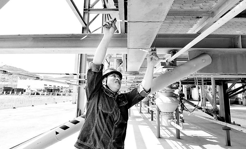 連日來(lái),龍安熱電公司員工堅(jiān)守崗位做好設(shè)備設(shè)施維護(hù),確保暑期正常供熱發(fā)電。圖為7月5日,該公司工人正在緊固電纜橋架蓋板。