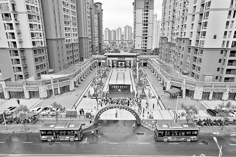 聯(lián)美公司龍巖美倫·生態(tài)城項(xiàng)目加快項(xiàng)目周邊配套設(shè)施建設(shè),滿足業(yè)主們出行便利性的需求。圖為7月6日上午9點(diǎn),該項(xiàng)目K38路公交路線開通,有力保障了群眾交通出行的安全和便利。