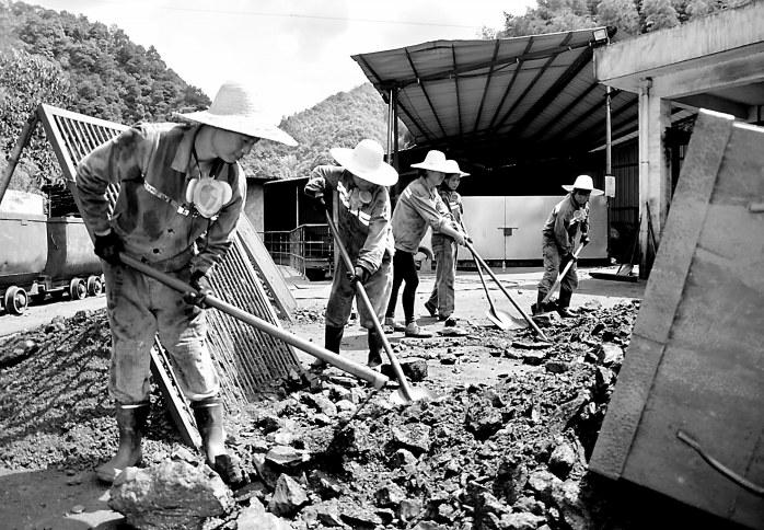 7月11日,永安煤業(yè)公司池坪蘆坑煤礦地面卡煤卡矸的職工們?cè)诟邷叵逻M(jìn)行篩選掘進(jìn)含煤矸石作業(yè)。