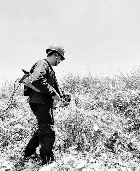 7月12日,福能新能源公司漳州隆教風(fēng)電場檢修員在風(fēng)機(jī)塔基周圍進(jìn)行除草工作。