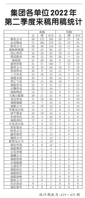集團(tuán)各單位2022年第二季度來稿用稿統(tǒng)計(jì)
